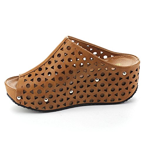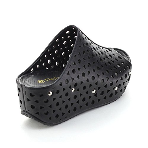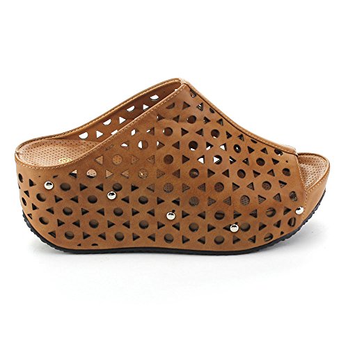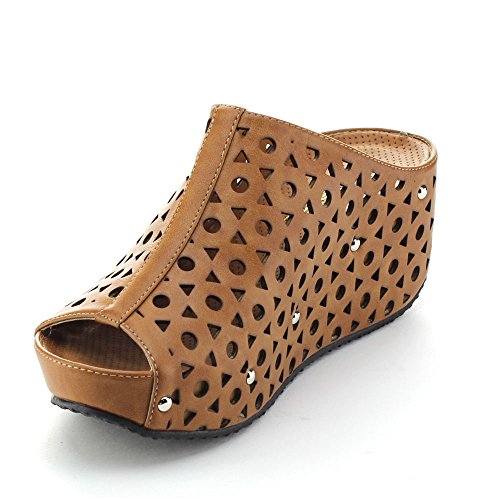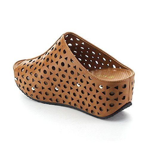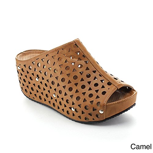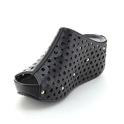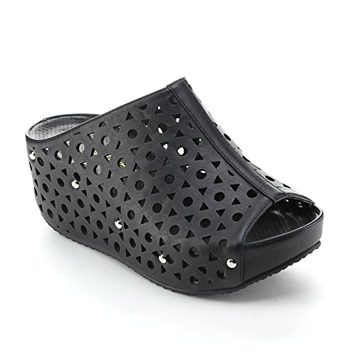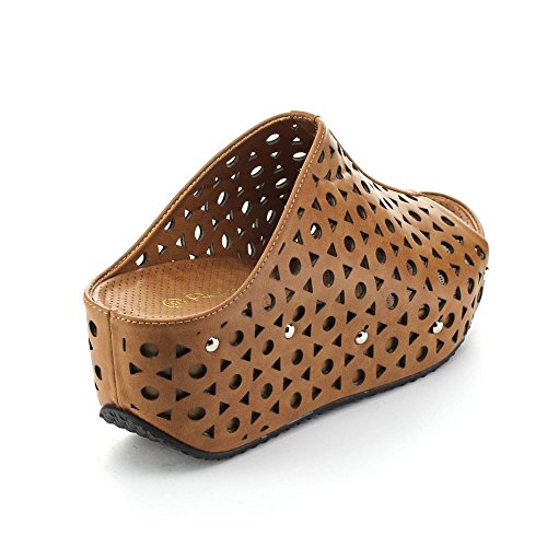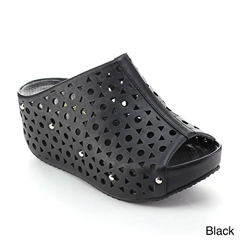 (re(FRESH))/Women's/Sandals/DIRECT FROM USA/Refresh ELVA-07 Women's Slip On s tud Platform Cut Out Wedge Mule Sandals