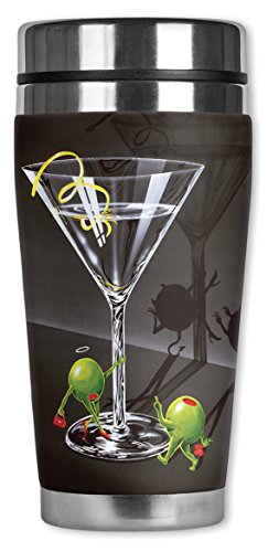Mugzie 922-MAX "Michael Godard: He & She Devil" Stainless Steel Travel Mug with Insulated Wetsuit Cover, 20 oz, Black