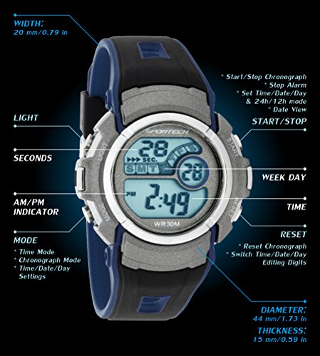 -. Title : Children's Watches by Sportech - Blue And Grey Digital Water Resistant Sport Watch - Make Every Second Count - SP10119
