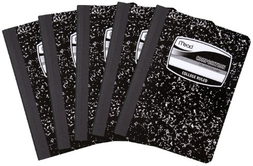 Composition notebook; one subject; 100 sheets per book (200 pages), 9.75 x 7.50 inch college ruled white sheets, 5 books per pack
