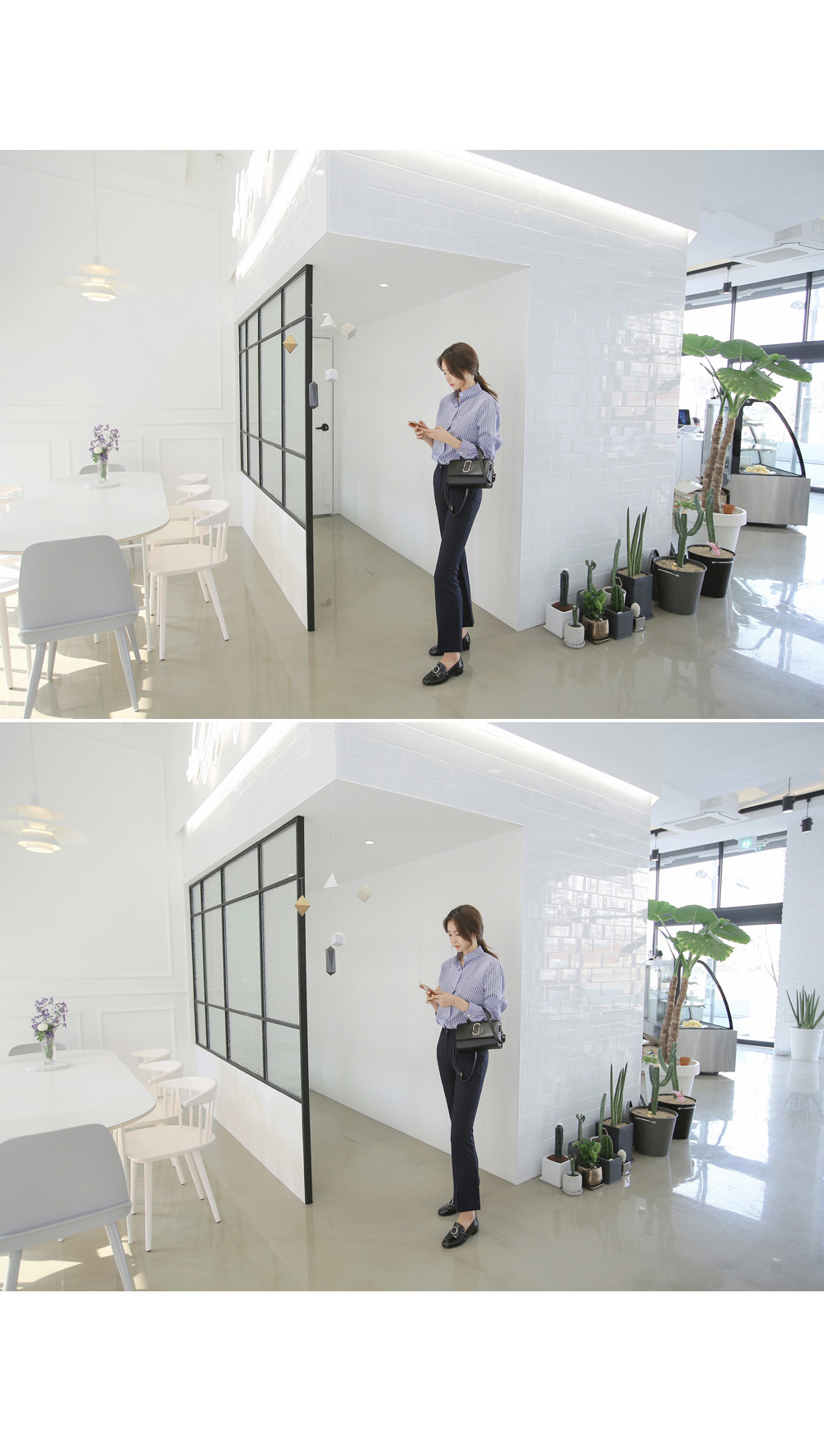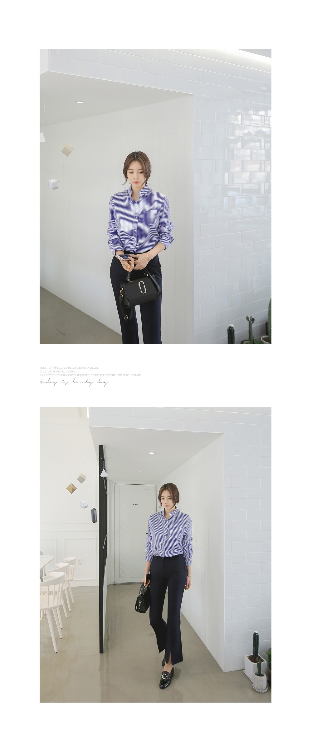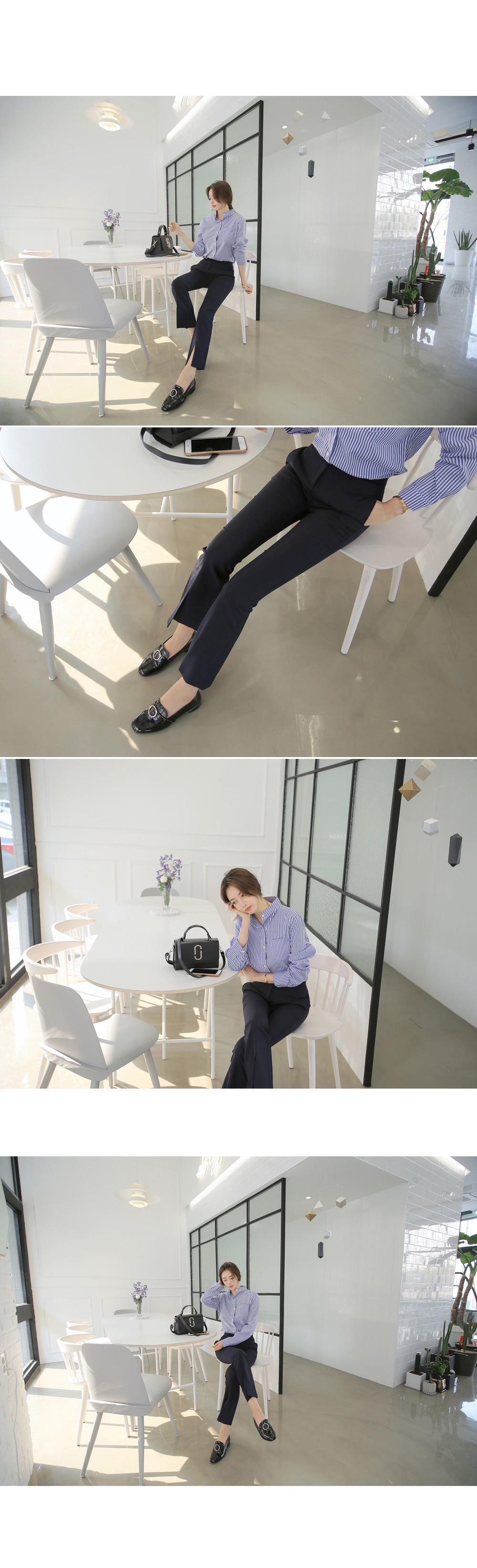 모던한 느낌의 부츠컷 슬랙스를 소개합니다.다리 라인을 한층 더 날씬하고 예쁘게 연출해주는 슬림핏으로트임 디테일이 더해져입었을때 더욱 매력적인 아이템이랍니다.센터 부분 단추와 지퍼 디테일로 오픈, 클로징을 편하게 도와주며포켓이 함께 구성되어 더욱 실용적인 아이템이에요.부츠컷 디자인으로 트랜디한 무드를 더했으며셔츠, 니트, 티 등 여러가지 상의 아이템들과 매치하여다양한 스타일로 연출하기 좋답니다.컬러는 네이비, 아이보리, 블랙으로 구성되었으며아이보리 컬러는 비침이 살짝 있을 수 있으니 참고하여 초이스해 주세요.