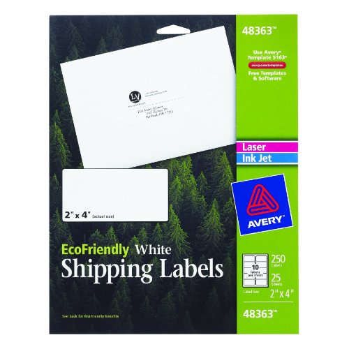 Avery Mailing Labels for Laser and Ink Jet Printers, 2 x 4 Inches, White, Permanent, Pack of 250 (48363)