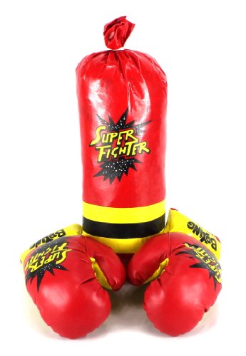 - Title : Super Fighter Children's Pretend Play Toy Boxing Set with Stuffed Punching Bag and Set of Soft Padded 10 Oz. Boxing Gloves, Perfect for All Kids (Colors May Vary)