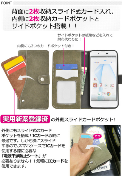 しかも横にスライドするので、スマホケースでICカードを使用する際に必要な