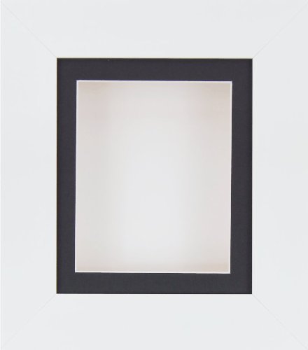 -. Title : BabyRice Deep Box Display Frame for 2D 3D Art Objects Medal Keepsake Baby Casts 1st Bootees Flowers White / Black Mount / White backing