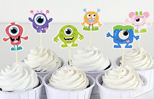 Lauren 24 Pcs Little Monster Qute Alien CupCake Decorative Toppers Cake Decorating Tools for Party