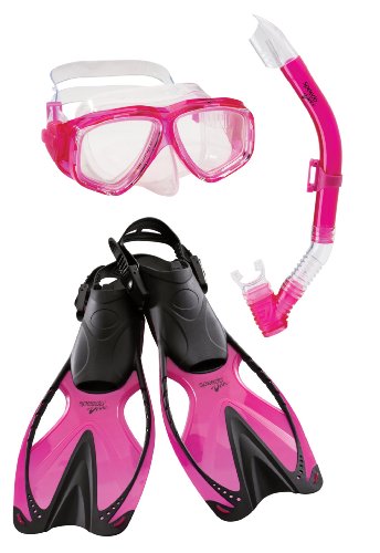Speedo Kids' Adventure Mask/Snorkel/Fins Set, Pink, Large/X-Large
