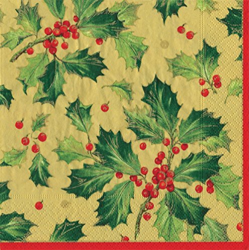 - Entertaining with Caspari Gilded Holly Cocktail Napkins, Gold, Pack of 20