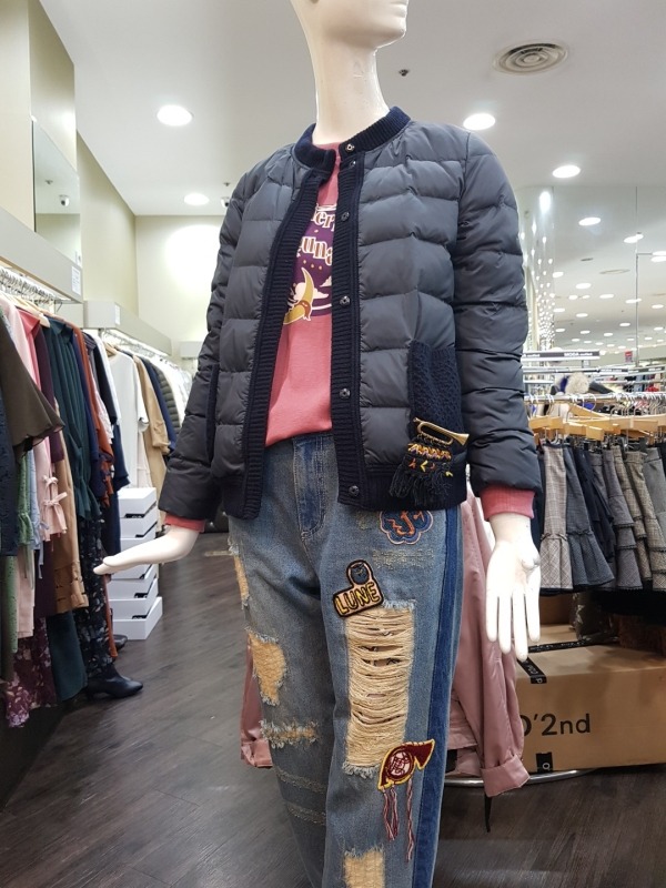 O'2nd 구스다운 경량패딩구스다운에 니트가 배색되어 고급스러움을 더했으며, 앞 주머니에 니트브로치가 포인트로 있습니다. 정말 가볍고 따뜻하며 원피스 청바지 어디에도 잘 어울리는 디자인입니다.