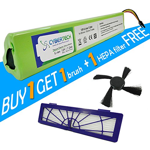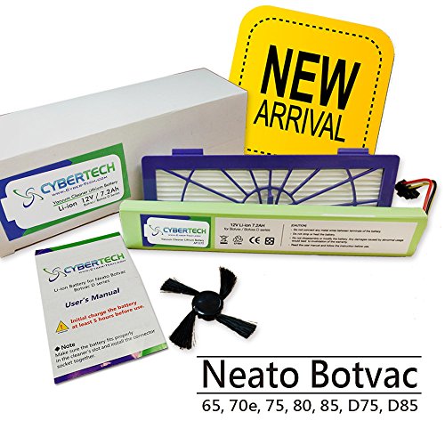 CyberTech High Capacity 7200 mAh Lithium Ion Battery for Neato Botvac Series 70e 75 80 85 and Botvac D Series D75 D80 D85 Robots, One Free Side Brush and One Free HEPA Performance Filter are included