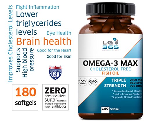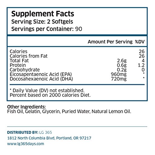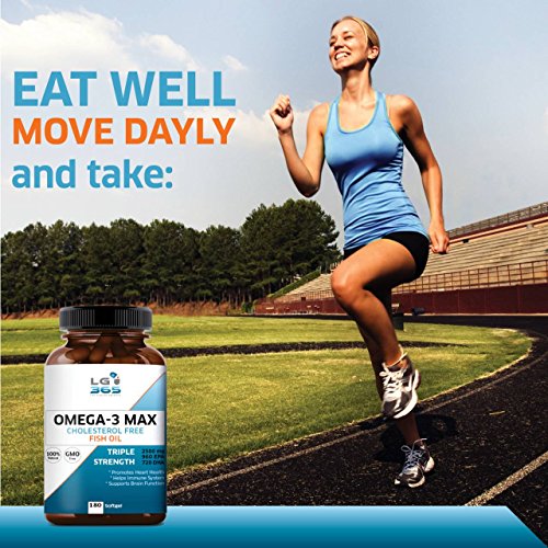-. Feature : LET`S GET LIVING - As a family business, LG-365 wants "Life to be Good 365 Days" for you, your family and everyone else. Health is everybody's top P.R.Iority right? With its high EPA & DHA fatty acids LG365 Max Omega 3 Fish Oil will tend to increased HDL (good cholesterol) and decreased triglycerides (fats in the blood) which is CRUCIAL for everybody`s health. Our Fish Oil meets the recommendation of 720 mg DHA per day, best optimum dose for best overall health. / REMEMBER EVERYTHING YOU WANT FOR AS LONG YOU WANT - LG365 Omega-3 fats builds brain cell membranes, reduces brain inflammation, and promotes new brain cell formation. Omega-3 essential fatty acids in particular are one of the most beneficial groups of nutrients for your brain and overall health. They help prevent weakening of the brain's function in adults and diminish cognitive decline. Each batch is IFOS 5***** certified. / TAKE PART IN SPORTS AND BE OUTDOOR ACTIVE AT ANY AGE YOU WANT TO - What`s better than joint comfort and mobility at any age. We'll keep you moving! LG365 Super Omega Fatty Acids supplement supports a healthy inflammation response and is carefully crafted to support a healthy, active lifestyle. In addition, omega 3 is simply good for your joint health! Get the job done - Eat well, move daily and take LG365 Omega 3 Fish oil. / QUALITY MATTERS - BETTER INGREDIENTS FOR BETTER RESULTS - Our Omega 3 Fish Oil has 1200mg/d, DHA 720mg/d, EPA 960mg/d. To expand to the maximum results and quality we have added Natural Lemon Oil, rich in vitamin C, just to make it perfect. Odorless & easy to swallow without fishy burps. Filtered, Mercury Free, GMO Free, Gluten free. Purified with molecular distillation at minimal temperatures to remove all heavy metals, mercury, PCB's and other toxins. / CUSTOMER SAFETY IS OUR TOP P.R.IORITY - THIRD PARTY TESTED. Made in USA in a FDA and GMP Certified Facility, HEAVY METAL TESTED for purity. We stabilize the oil in highly bioavailable triglycerides. This means your body is able to absorb all the powerful Omega 3 fish Oil EASY up to 50 times faster than with other brands. Our product is 100% GUARANTEED OR YOUR MONEY BACK.