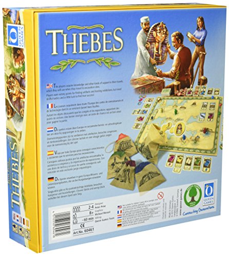 -. Binding : Toy -. Brand : Rio Grande Games -. EAN : 4010350604618 -. Feature : Innovative time-based mechanic / Fun immersive gameplay / High quality colored cloth bags and time wheels / For two - four players, age eight and up / Plays in about 60 minutes / For 2 to 4 players / Playtime of 60 to 90 minutes / Competitive archeological theme / It is a board game / Clever time and turn system -. Genre : strategy -. IsAdultProduct : 0 -. IsAutographed : 0 -. IsMemorabilia : 0 -. ItemPartNumber : QGTH01 -. Label : Queen Games Direct Import -. Manufacturer : Queen Games Direct Import -. Model : 84RGG -. MPN : QGTH01 -. PackageQuantity : 1 -. PartNumber : QGTH01 -. ProductGroup : Toy -. ProductTypeName : TOYS_AND_GAMES -. Publisher : Queen Games Direct Import -. SKU : RIO084 -. Studio : Queen Games Direct Import -. Title : Queen Games Thebes -. UPC : 783324773590