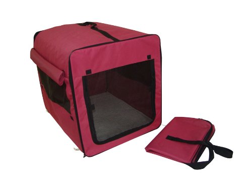 -. Title : Burgundy Dog Cat Pet Bed House Soft Carrier Crate Cage w/Case L