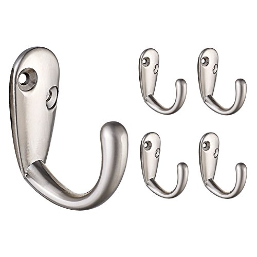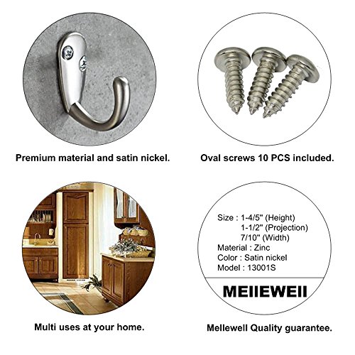 Mellewell Single Prong Coat and Hat Hook Cloth hanger in Satin Nickel, 5 Pack, 13001S