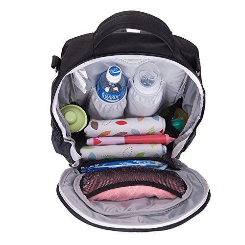 - Feature : Stroller attachments to your stroller handle; / 4 piece diaper bag set comes with 1 large diaper backpack,1 changing pad, 2 stroller straps, 1 warm keep bottle bag and 1waterproof organizer bag; / Diaper changing pad: Size: 23"L x 14"H, Material is easy to wipe clean&Wipe case: Size:9"H"*W3.5"; / 7 interior pockets: 1 zipper pockets and 2 mesh pocket , 2 open pockets for nappy ,and 2 side mesh pockets ; / 3 external pockets: 1 front double zipper pocket and 2 pockets is bottle pockets on the sides.