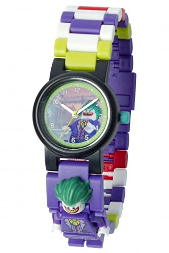 -. Title : L.E.G.O Batman Movie The Joker Kids Minifigure Link Buildable Watch | purple/white | plastic | 28mm case diameter | analog quartz | boy girl | official