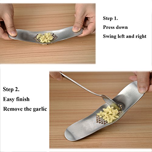 1.Durable Garlic Presser: anti-mildew, not rust, crushes cloves quickly and easily, forcing the pieces up through the array of small holes in its base.