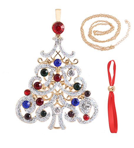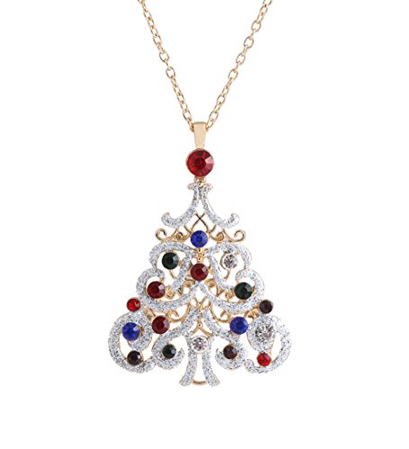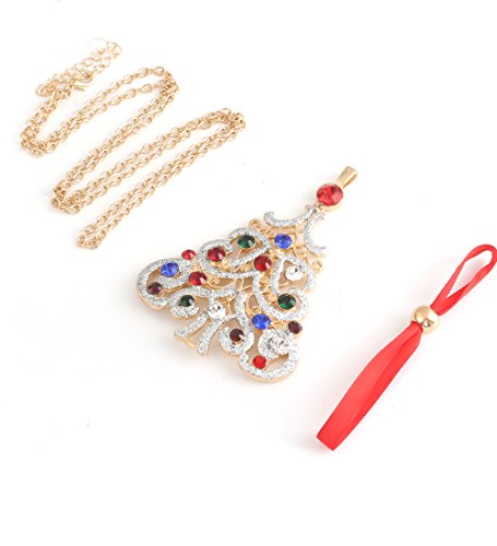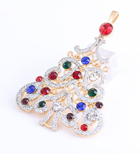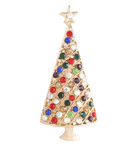 NLCAC Xmas Pin Brooch Crystal Cluster Santa Wreath Candy Cane Snowflake Banner Pin Delicate Gold Reindeer (big Christmas tree)