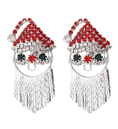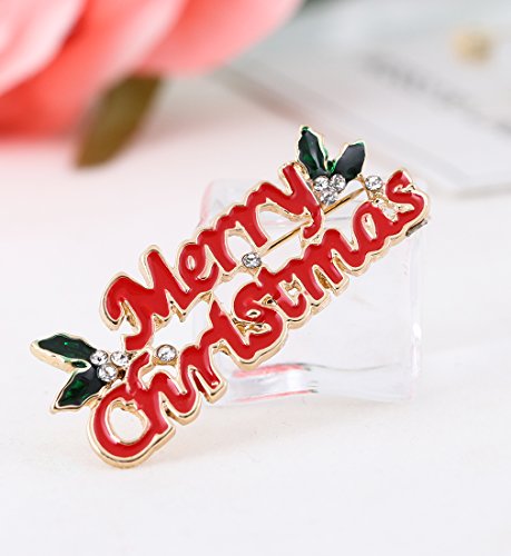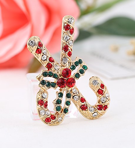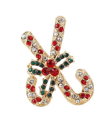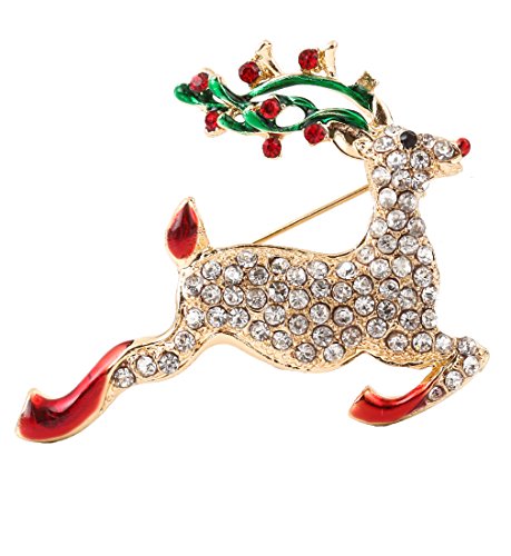 NLCAC Xmas Pin Brooch Crystal Cluster Santa Wreath Candy Cane Snowflake Banner Pin Delicate Gold Reindeer (santa earring clips)