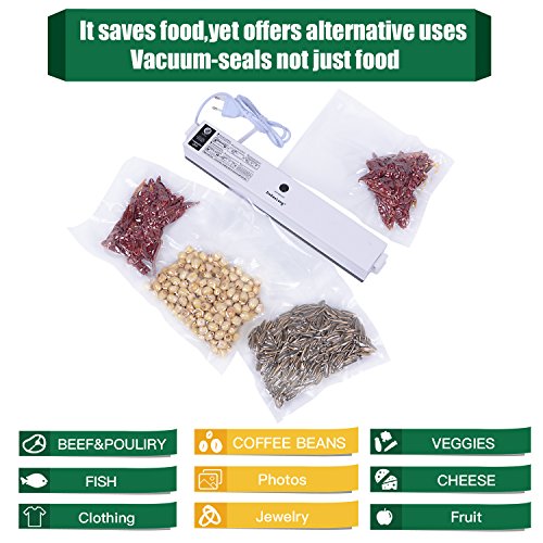 - Mini Portable Vacuum Sealing System eliminates freezer burn, reduces spoilage and food waste.