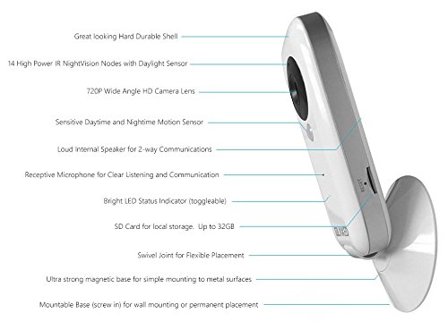 -. Feature : Voice Guided Installation - The app provides clear and easy step by step voice instructions / Daylight/Nightvision Motion Sensor - senses motion day or night / 14 x IR Nightvision Nodes - nightvision in complete darkness up to 25 feet / 2-Way Communication - excellent mic and speaker for true two way communication right through the App / Secure Remote Servers - protected by a username and password the user sets up. Can also privately lock individual cameras