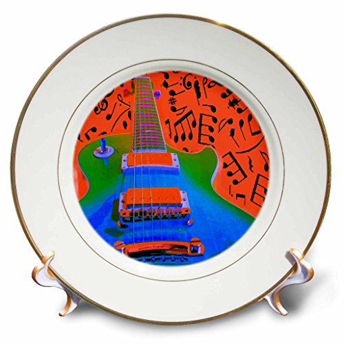 3dRose cp_14843_1 Colorful Guitar Porcelain Plate, 8"