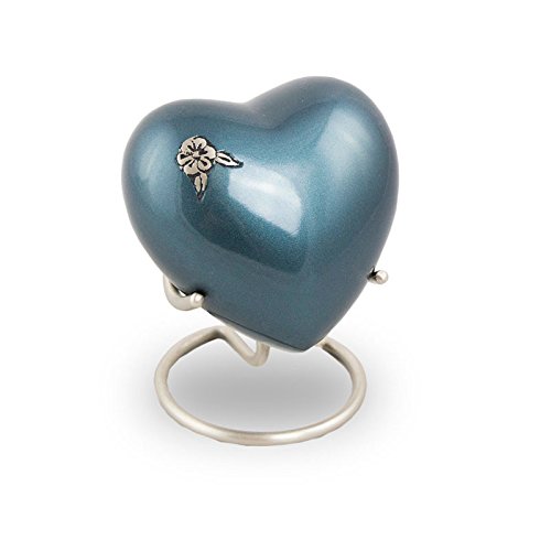 - Indigo heart-shaped cremation keepsake with a metallic luster finish.