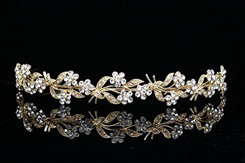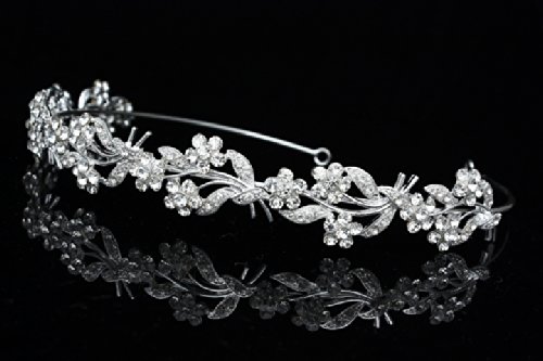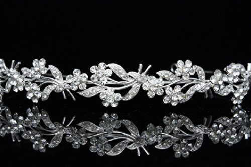 Flower Wreath Bridal Headband Tiara - Clear Crystals Silver Plating T630