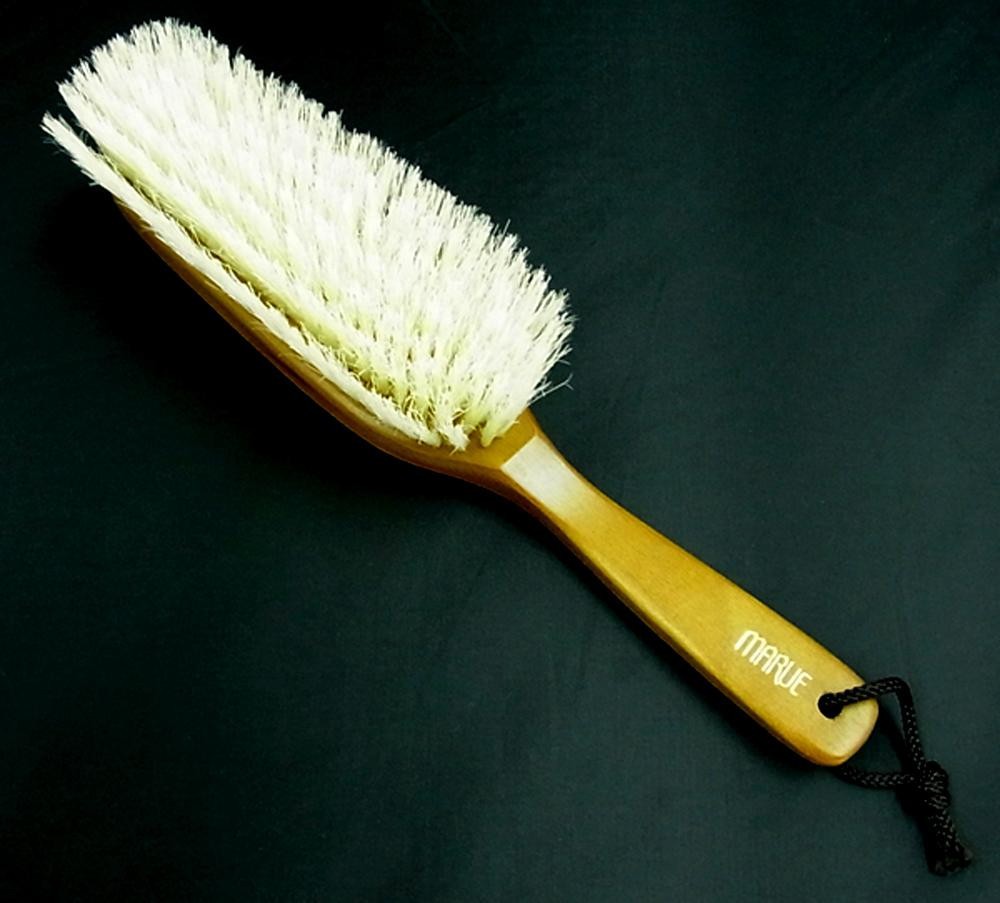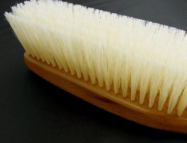 和装用にキメ細かく柔らかめの「2段植毛」によるブラシに仕上げました。質感を損なわないようにソフトにホコリや花粉を除去してください。豚毛は静電気が起こりにくく、高級な布地を傷めません。 |