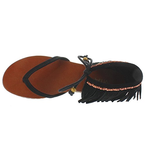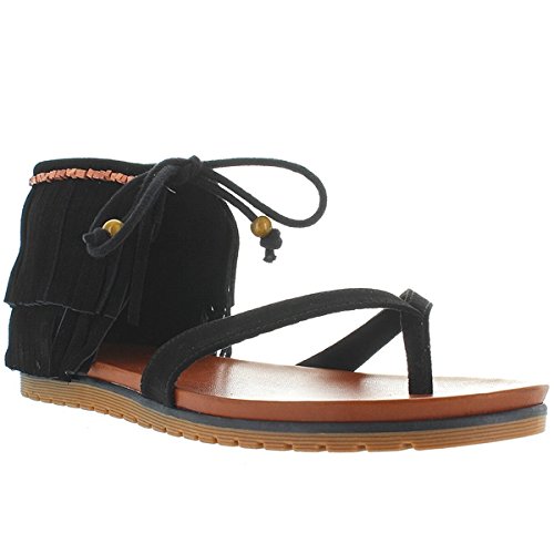 Studio : MIA Publisher : MIA Binding : Apparel Product Description Boost your hippie-chic, boho vibe in the festival-ready Mia Native sandal. Inspired by classic American Indian moccasins, this women's thong-style sandal is offered in faux suede and accented with beaded details for ethnic appeal; the closed back ties at the ankle for a secure fit. Underfoot, the cushioned footbed and midsole absorb shock atop this playful sandal's synthetic traction sole. 0
