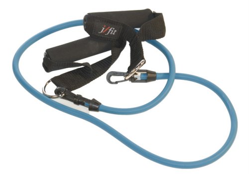 Studio : J Fit Publisher : J Fit Binding : Sports Product Description No need to buy five different tubes with handles. Cut your cost by more than half with one set of handles and five different replacement tubes. Prevention magazine shows some great exercises in the May issue using the replacement tubing. j/fit would like to suggest at least one set of tubing with handles to increase the variety of exercises. If you are looking for dumbbells j/fit sells the neoprene grip weights that are easier to use than standard dumbbells. Great for seniors, rehab, or arthritic patients. May we also suggest using a door anchor "to help save the furniture"! You can find the door anchor in accessories. Our large cushioned rotating handle, paired with strong, durable nylon strapping creates one of the best handles on the market. Adjust the length by double wrapping and combine tubes together to increase strength and versatility. X-Heavy Tubing with Handles.