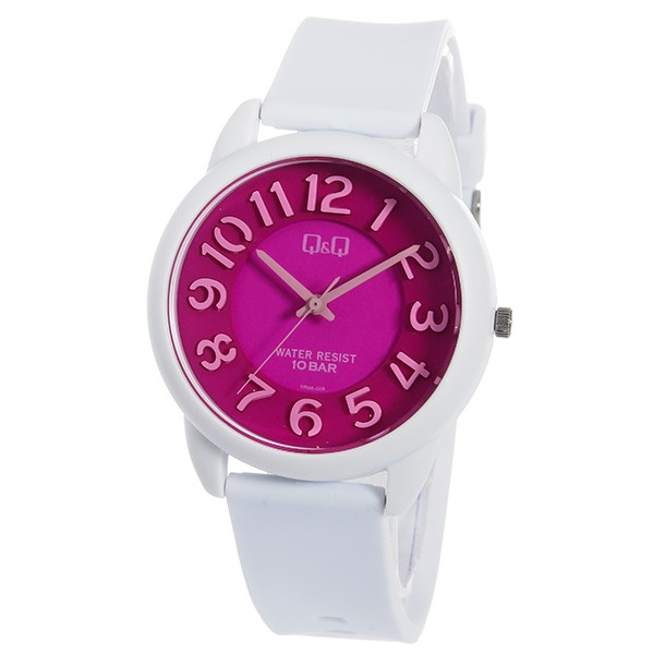 クオーツ、10気圧防水、カラー:ピンク(文字盤)、ホワイト(ベルト)、ピンク(インデックス)