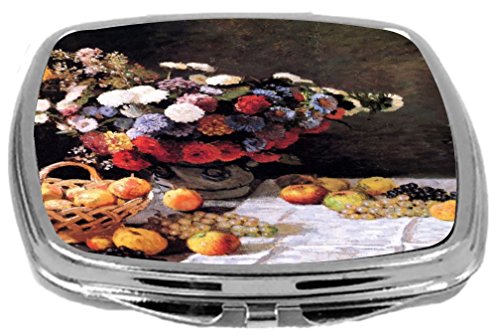 Rikki Knight Compact Mirror, Claude Monet Art Flowers and Fruits, 3 Ounce