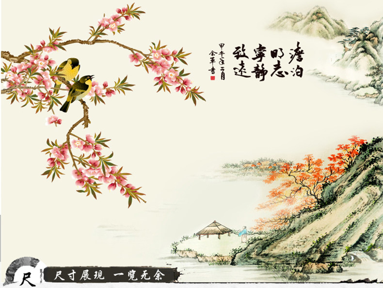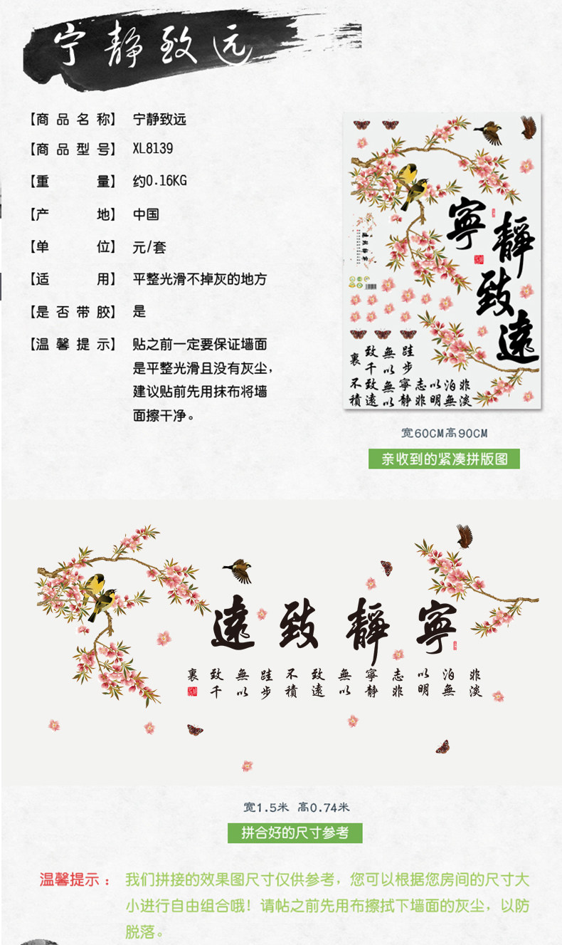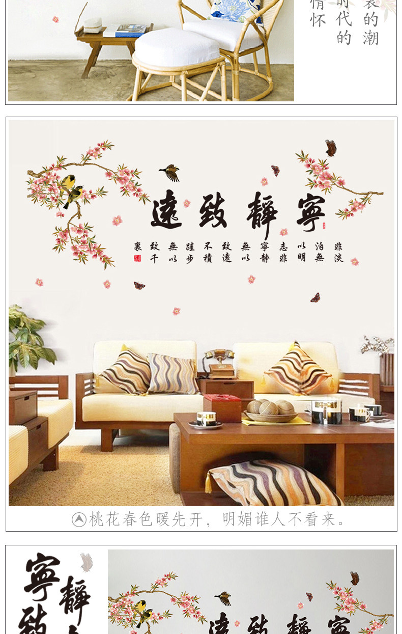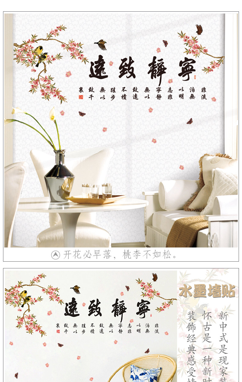 中国风宁静致远墙贴客厅电视背景墙卧室房间装饰品贴画墙壁贴纸