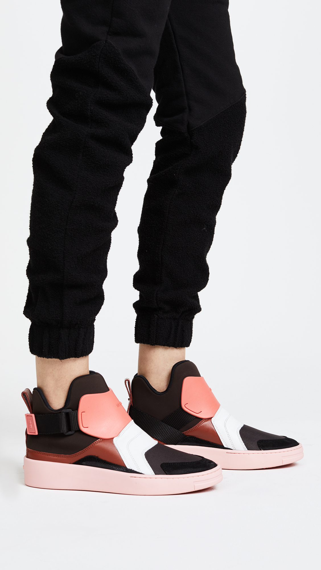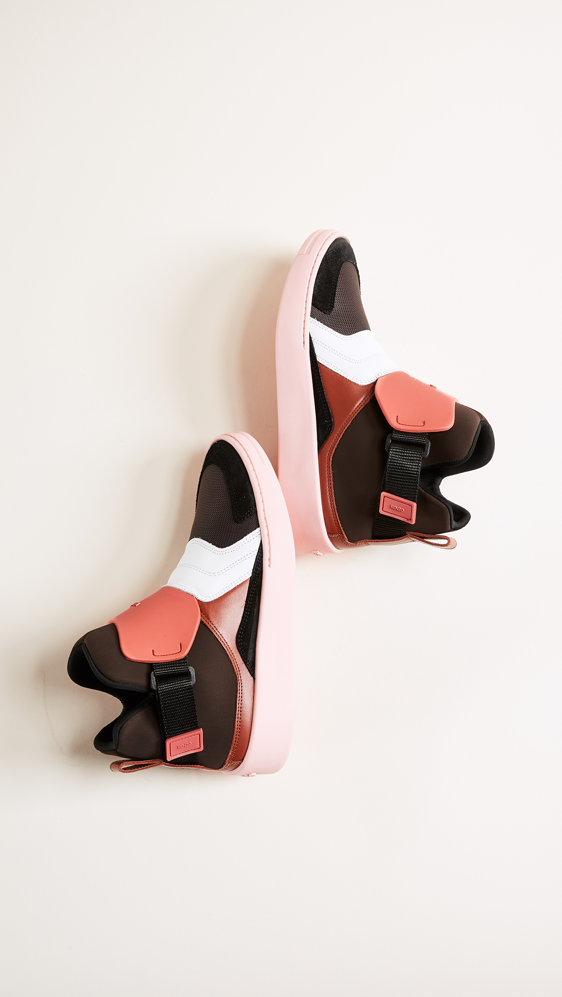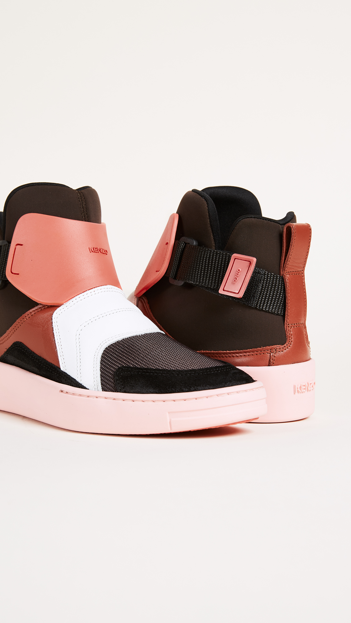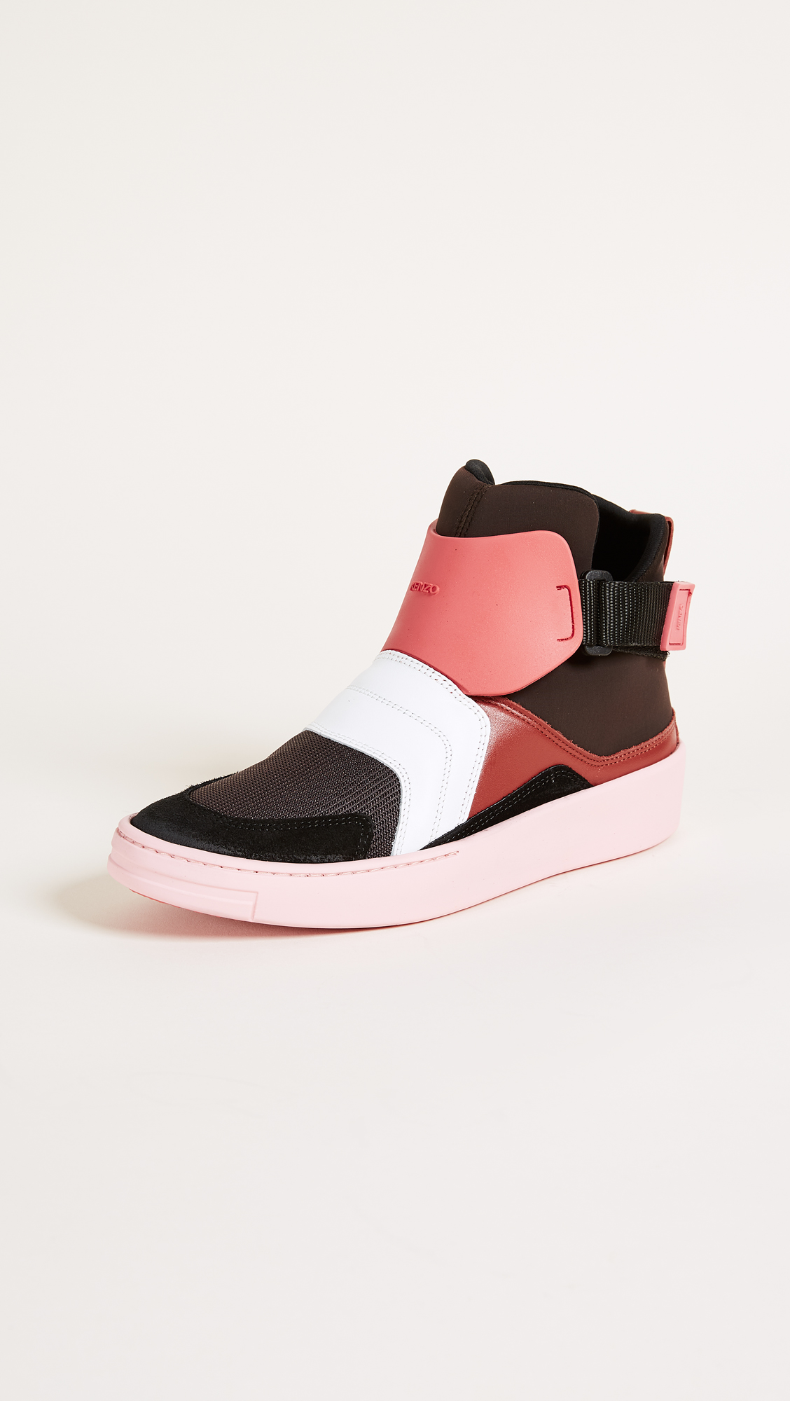 Colorblock KENZO high-top sneakers in a mix of mesh and leather. A Velcro strap cinches the padded, neoprene sock. Colorful platform and crepe sole.Fabric: Neoprene.Made in Portugal.MeasurementsHeel: 1.25in / 34mmPlatform: 0.75in / 21mm