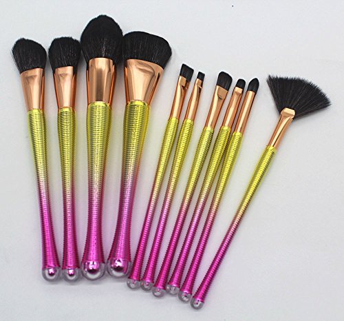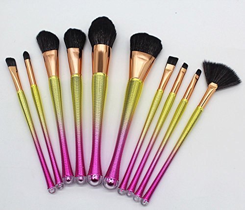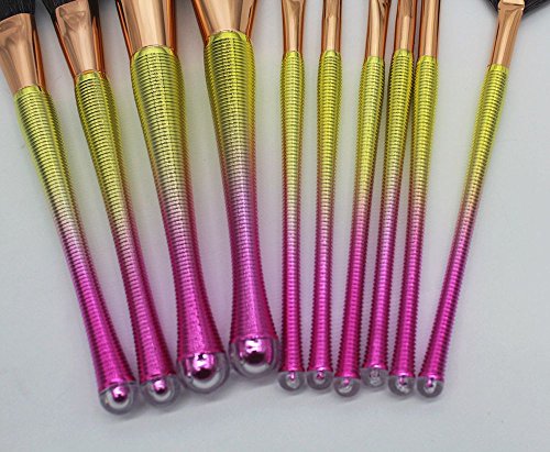 - 10pcs Colorful Rainbow Unique Spiral Makeup Brushes Set with Brush Pouch or box( as you choose) micro synthetic earth-friendly hair, super soft and pluffy, with strong powder holding power, give you flawless makeup every time.