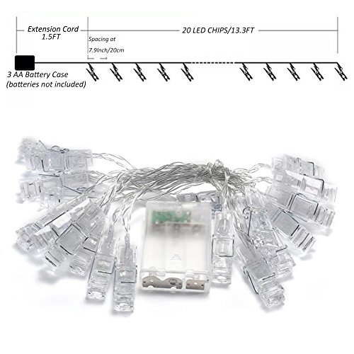 LED Photo Chip String Lights 20 LED 13.3 Feet with 20 Clear Chips Battery Operated Christmas Lights Indoor Fairy Lights for Hanging Pictures, Artwork, Memos and Card Warm White