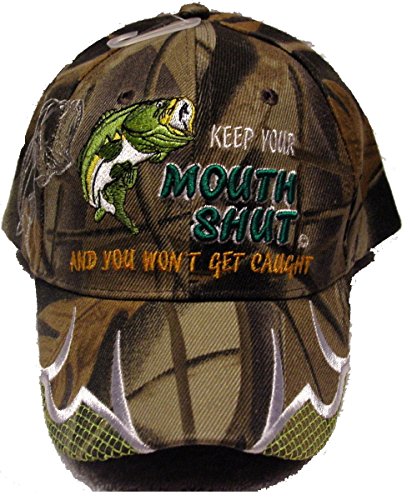 KEEP YOUR MOUTH SHUT AND YOU WONT GET CAUGHT CAMO BASS FISHING HAT funny baseball cap