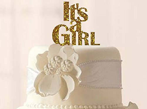 Its a Girl Baby Shower Super Gold Glitter Elegant Cake Decoration Topper (Gold Glitter)