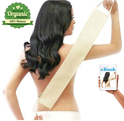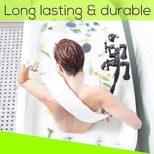ABOUT THE QUALITY: We are proud to say that we differentiate from our competitor with our better materials used in production but also by design. Our back scrubber is 30 inches long with durable rope, 11 inches of weave loofah scrub and 3.3 inches wide. To maintain the quality we recommend hand washing and replacement every 6 months.