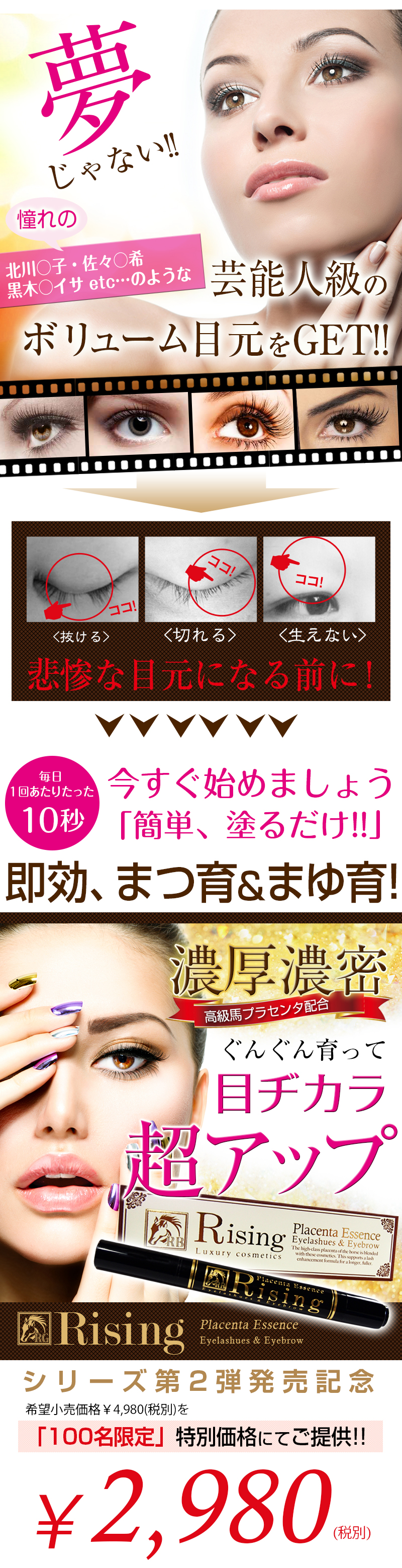| 商品名 | ライジング プラセンタエッセンス アイラッシュ & アイブロウ |