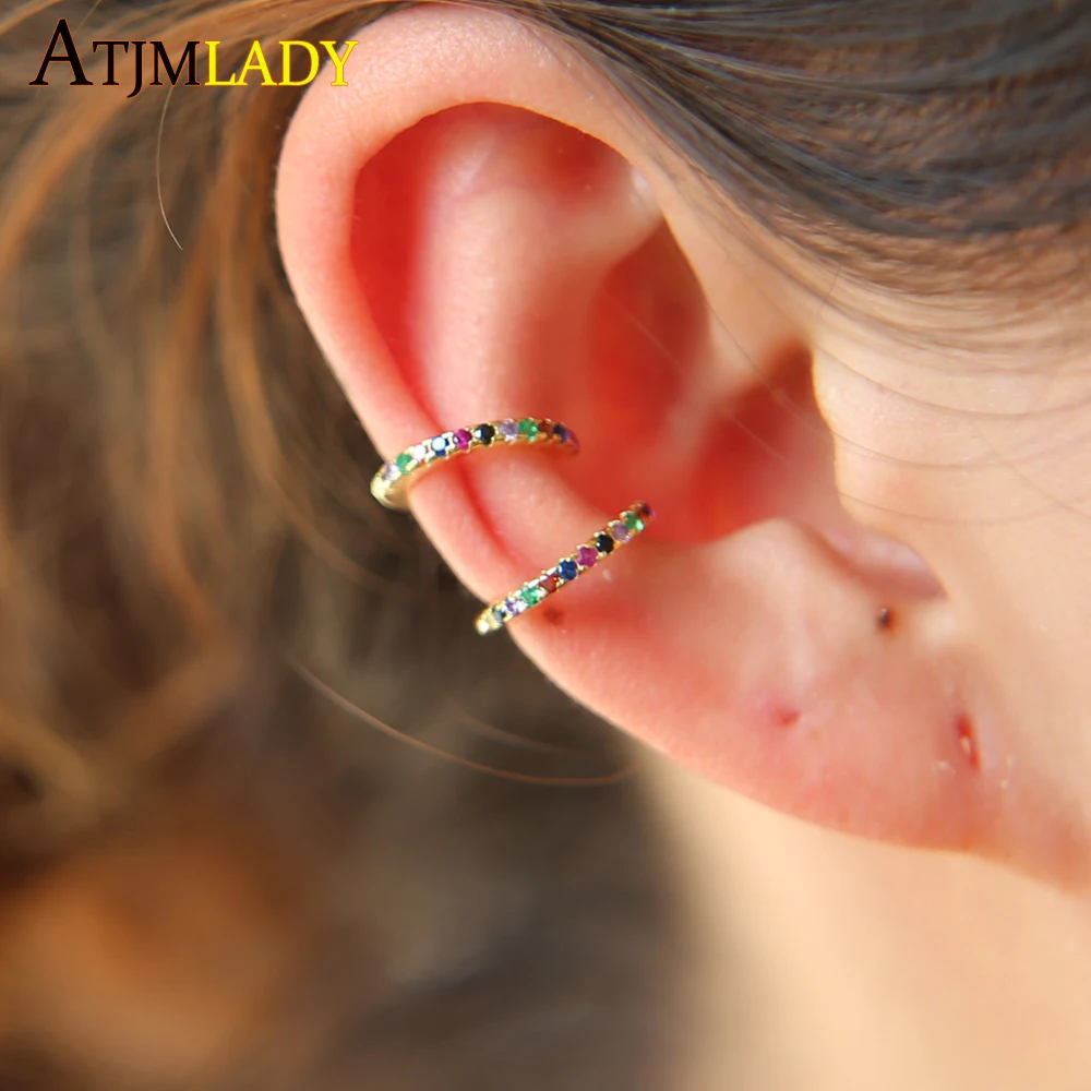 Item name:925 sterling silver delicate Rainbow cz Earrings small sized little gi