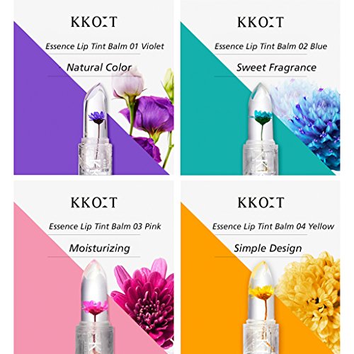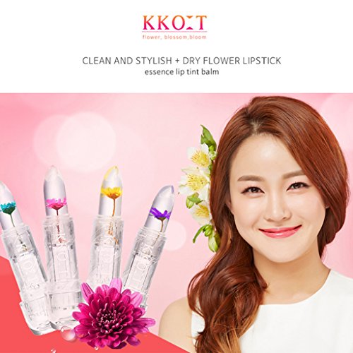 KKOT Essence Lip Tint Balm 3.5g / 0.12 oz, Jelly Flower Lipsticks, Temperature Color Change Moisturizing Lip Care, Natural Safe Ingredients, 4 Colors (#3 Pink)