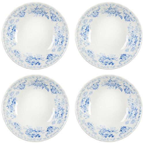 Queen's Light Blue Floral Ceramic Soup Bowls, Made in England, 8”L x 8" W x 1.75”H with 12-oz. capacity, each (Set of 4)