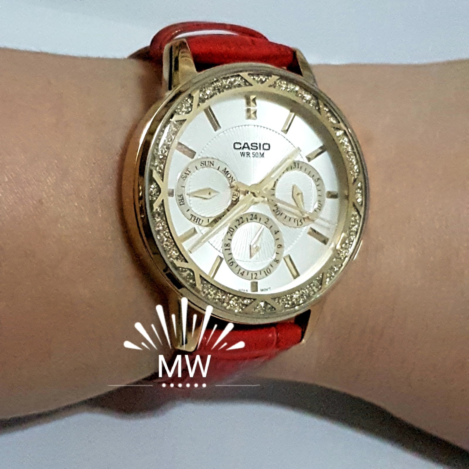 CASIO SILVER DIAL DAY DATE PINK LEATHER STRAP LADIES WATCH LTP-2087GL-4AV NEW