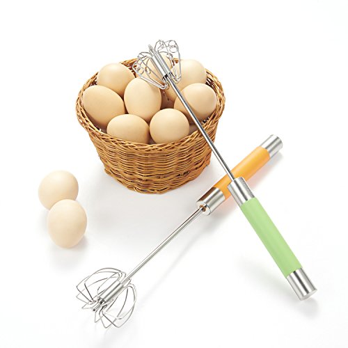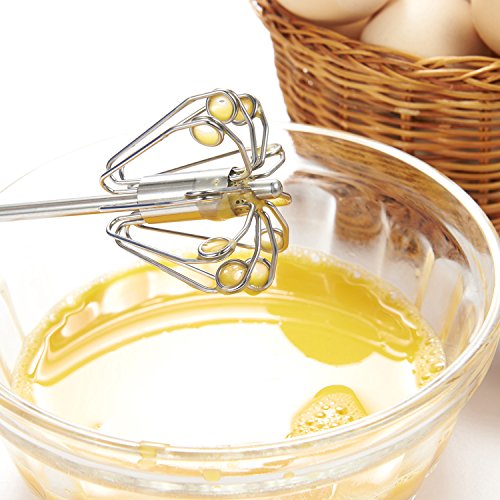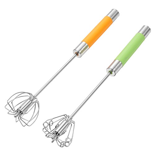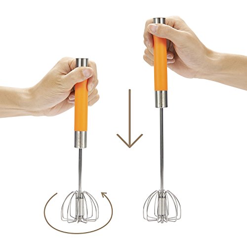 -. Feature : STYLISH DESIGN - Chefaith 12" hand operated self rotating semi-automatic stainless steel whisk is a miracle design in the kitchen. It saves effort while gets the work done much faster than the ordinary whisk without using electricity or battery. Simply press down the handle and the whisk stainless steel blades rotate, no more wrist spinning! The ergonomic handle provides secure and comfortable grip for any mixing task. / MULTI-USE & EASY TO CLEAN - Perfectly to be used for whisking, whipping and mixing eggs, sauces, milk shakes, whipped cream, batters. Stainless steel material ensures the whisk very easy to clean. Just rinse it in warm soapy water or throw it to the dishwasher. / PREMIUM QUALITY & ULTRA DURABLE - Heavy-duty stainless steel construction guarantees the quality that will last years, 100% rust & corrosion resistant. / BONUS SILICONE COATED WIRE WHISK - Made of 304 grade heavy-duty stainless steel, and the whisk tip is coated on food-grade non-toxic silicone to protect your pans from scratches. Silicone used is FDA compliant and BPA free, heat resistant up to 400°F. Enclosed to meet your traditional preference without extra money! / SPECIAL P.R.ICE - Premium 2-Piece whisk set at this SUPER-LOW P.R.Ice for a LIMITED TIME ONLY. Please search "chefaith kitchen utensil" for other products offered by Chefaith.