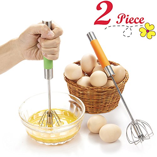 -. Title : Chefaith 2-Pcs 12" Stainless Steel Hand Push Whisk [Self Rotating] [Semi-Automatic] - Premium Quality Kitchen Whisk Set, Bulletproof Coffee, Lattes, Versatile Egg Beater, Milk Frother, Blender, Mixer