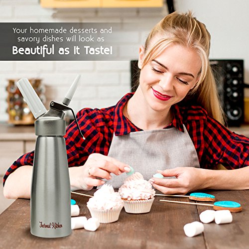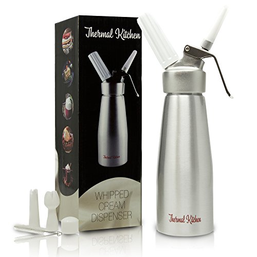 Thermal Kitchen Whipped Cream Dispenser – 1-Pint Whipper Canister Container with 3 Whipping Decoration Tips and Parts – Whip Cream Maker Compatible with Standard 8-gram N2O Chargers (Not Included)