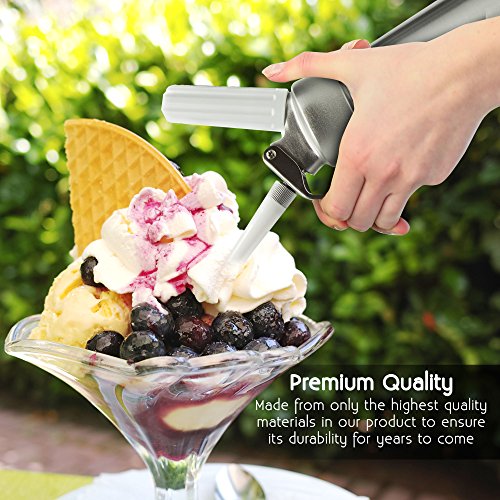 REMARKABLE CRAFTSMANSHIP AND PREMIUM MATERIAL; Our whipped cream dispensers are carefully crafted so that they have the perfect weight and shape; We only use highest quality materials in our product to ensure its durability for years to come