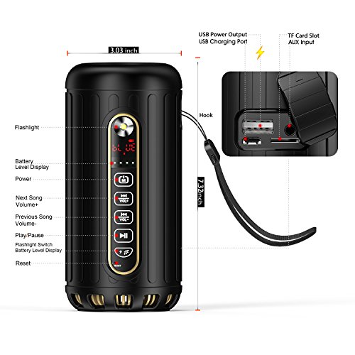 -. Title : Aolaifo Portable Bluetooth Wireless Speaker - BEST for Outdoor, Sports - Waterproof, Dustproof, Shockproof w/ Built-in 6600mAh Powerbank, 30 Hours Playtime, LED FLASH light, TF card Slot - BLACK